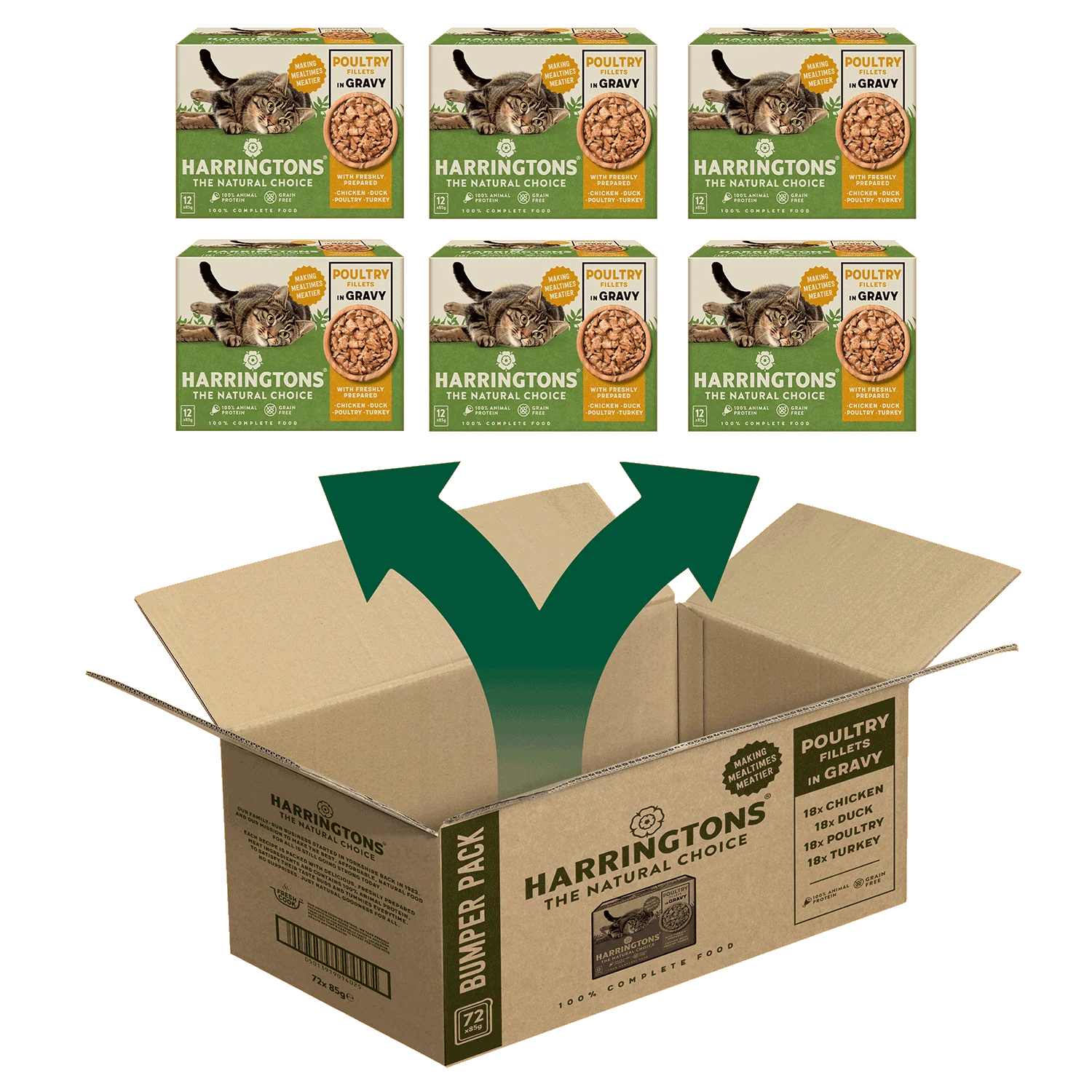 For those cats who cannot resist a meaty gravy. Made with four varieties of freshly prepared meat ingredients, this pack contains a range of tasty meals in a delicious gravy. And rest assured, 100% of the protein is derived from animal sources and it is grain-free meaning there’s no surprises, just natural wholesome goodness.