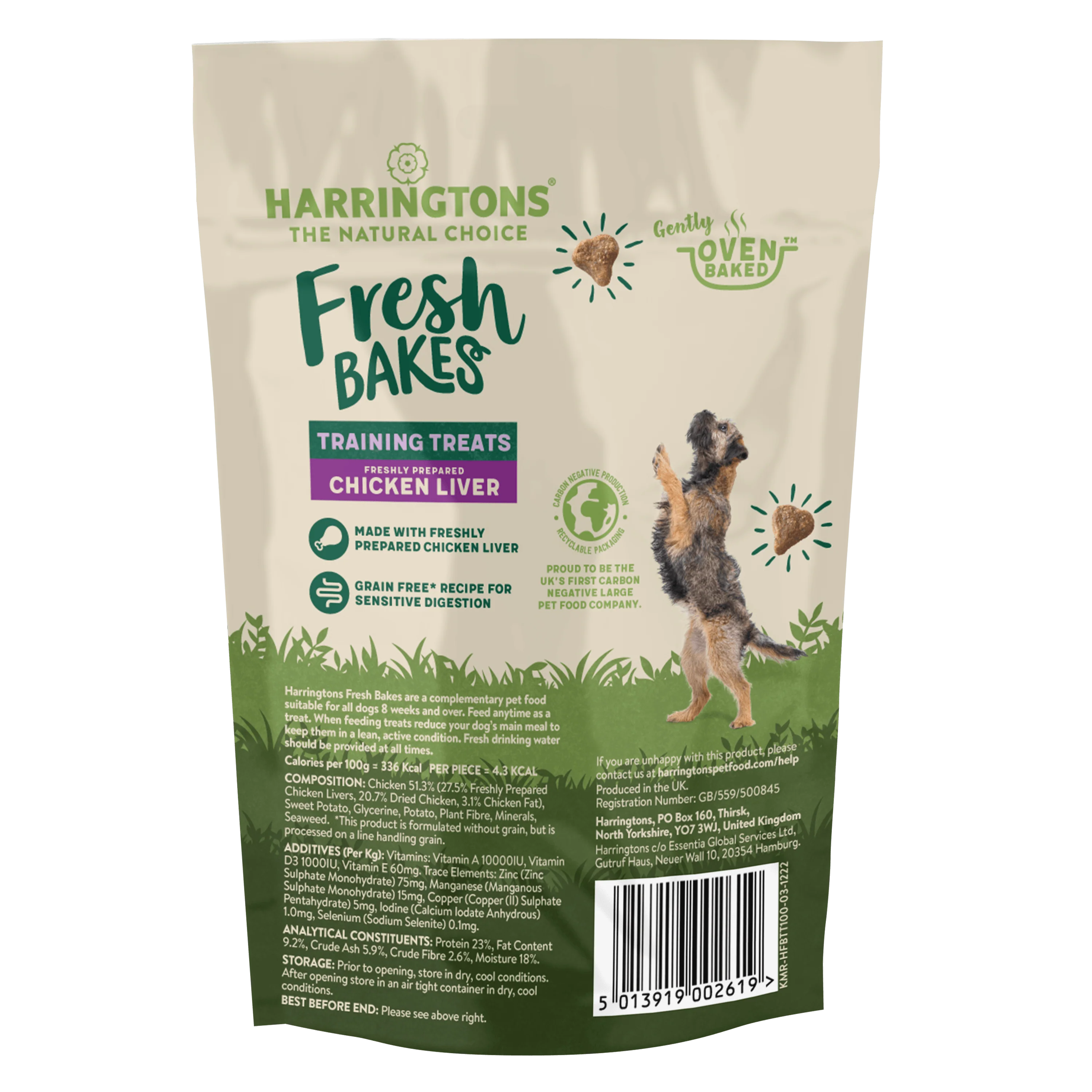 Tasty chicken liver training treats, made with human-grade ingredients and gently baked using our FreshBakes® process. The irresistible flavour makes them perfect for getting your dog's attention during training sessions.