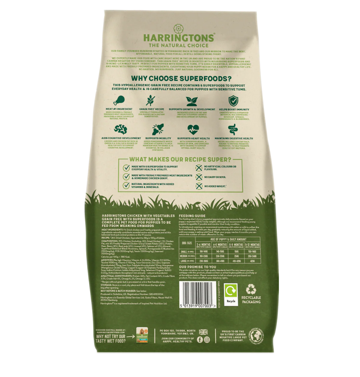 Harringtons Superfoods Grain-Free Dry Puppy Dog Food Chicken & Vegetables 1.7kg